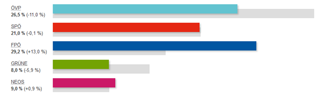 So führt die FPÖ derzeit mit deutlichem Abstand vor der ÖVP und SPÖ mit ca. 30 % bei den aktuellen Wählerumfragen. Bei den Landesregierungen sind die Freiheitlichen bereits in drei Landesregierungen etabliert, wobei die wahre Macht in Österreich immer noch bei Rot (SPÖ) und Schwarz (ÖVP) liegt.